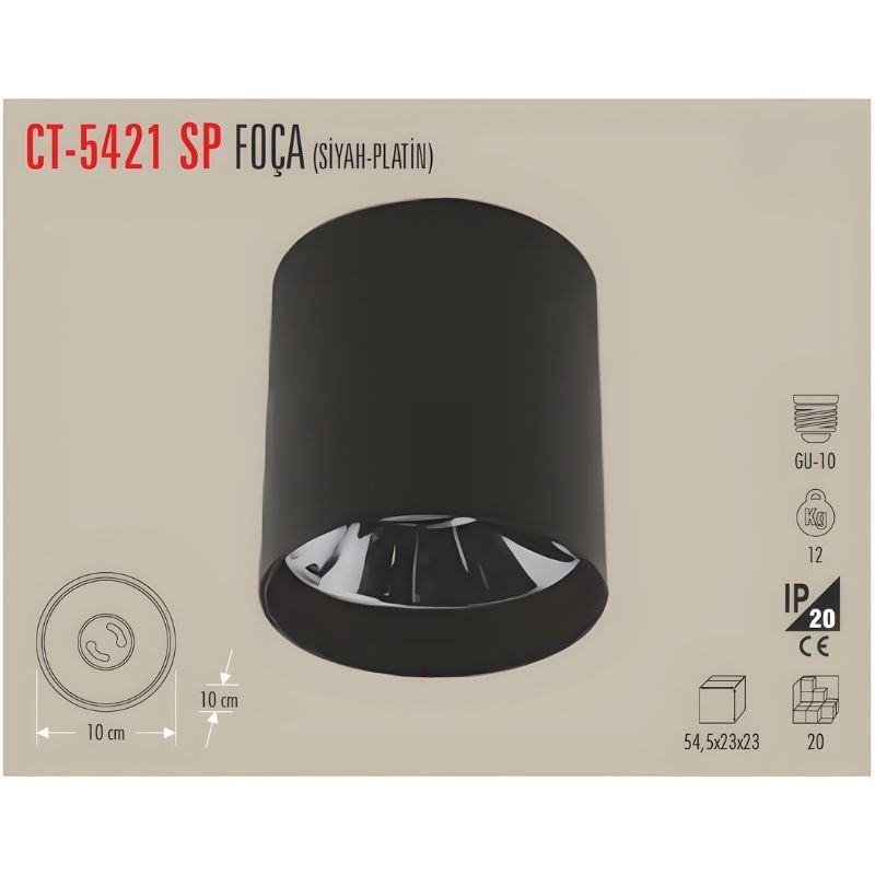 Cata Ct-5421 Foça Sıva Üstü Armatür (Siyah-Platin) Gu-10