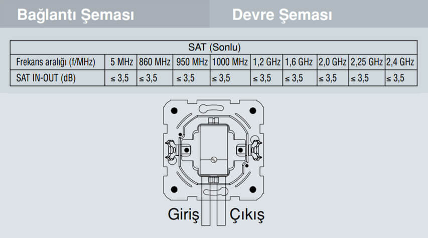 Viko Karre F Konnektörlü Uydu Prizi Bağlantı ve Devre Şeması