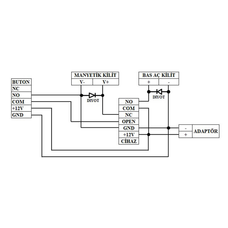 Manyetik kilitler kart okuyucuların NC ucuyla bağlanarak sürekli enerji alarak çalışırlar. Kart okuyucudan kart veya çip okutulduğunda kontak açık hale gelerek enerjiyi keser ve manyetizma devre dışı kalır. Kapı açılır. Manyetik kilitler L ve Z aparatlarıyla kullanılır. Yangın kapılarında özellikle tercih edilir. Yangın çıktığında elektrikler kesildiğinde kapı açık kalır.